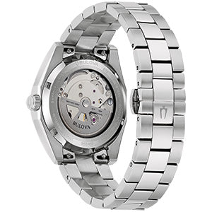 Definido por su excepcional calidad y estética sofisticada, el Bulova Surveyor para hombre es el reloj moderno por excelencia. Los bordes esculpidos y el facetado distinguen la caja de acero inoxidable plateada, con acabado pulido y cepillado, un cristal de zafiro plano y un brazalete de acero inoxidable de tres eslabones con cierre desplegable de botón y pasadores de fácil liberación. La radiante esfera azul claro presenta un acabado sunburst y detalles plateados, agujas con relleno luminiscente, marcadores de minutos recortados, fecha ampliada y minutero empotrado. El reloj está impulsado por un movimiento automático de 21 rubíes y una reserva de marcha de 42 horas, visible a través de una ventana de exposición en el fondo de la caja. Para quienes buscan un lujo refinado, este reloj Bulova para hombre es la elección perfecta.